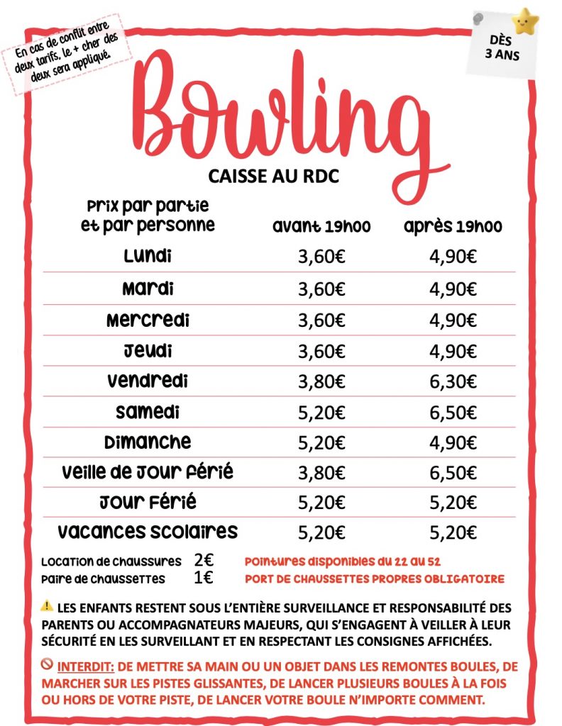 Les réservations Bowling sont destinées aux groupes de + de 8 personnes.
