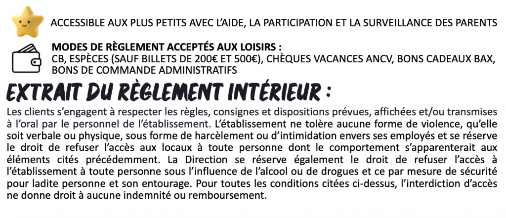Accessible aux enfants dès 3 ans avec équipements spécifiques, avec l’aide et sous la surveillance d’un adulte.